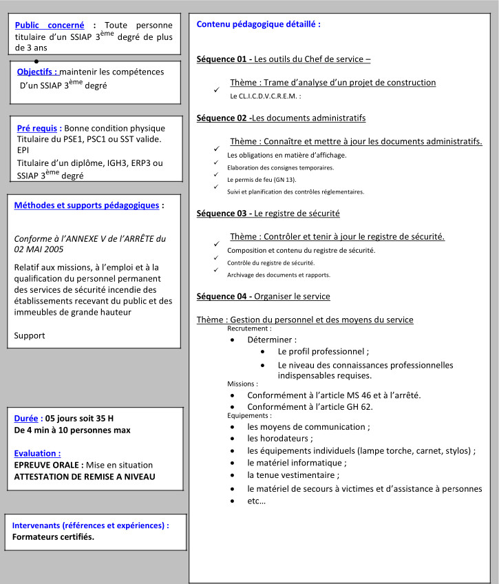> Formation securite-incendie Remise à niveau - SSIAP-3 lille